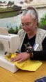 Liliya Thomas works on clothing repairs at the Wellington repair café