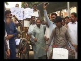 sunni Tehreek protests against Geo Tv for telecasting Islam insulting program and Raised question still the responsibles are not punished.