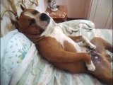 Ce chien dort comme un humain