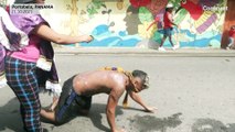 ROUGH CUT (NO REPORTER NARRATION)<br/> <br />Pope Francis celebrated the feast of the Immaculate Conception of the Virgin Mary by making a personal pilgrimage to Rome on Monday (December 8) to pay homage and pray at the statue of the Madonna in Piazza di Spagna (the Spanish Steps).<br/> <br />The Pope was repeating a custom of all pontiffs to mark one of the major feast days within the Catholic Church in honor of Mary, the mother of Jesus.<br/> <br />Upon his arrival in a modest Ford Focus, he greeted some VIPs including Rome's Mayor Ignazio Marino.<br/> <br />Crowds of visitors had gathered in the square to join in prayer with the Pope in a solemn ceremony filled with music.<br/> <br />Francis asked the Madonna for protection and prayers.<br/> <br />"We pray today for your maternal protection for us, for our families, for this city, for the whole world. Our Mother Immaculate, pray for us!" said the Pope.<br/> <br />The iconic piazza, shaped in the form of two sharp triangles that meet at the points, has been the destin