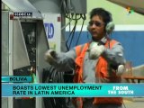 Bolivia's Labor Ministry has found that more than 500,000 jobs have been created in the country since President Evo Morales first came to power in 2006, resulting in what they say is now the lowest unemployment rate in Latin America at 3.2 percent.