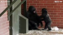 Gorilla bros have fun at the zoo