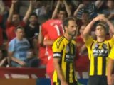 Izzo dell'Adelaide United subisce un contropiede del Wellington dopo aver tentato il pareggio con un colpo di testa