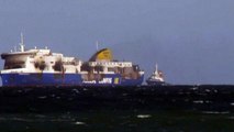 ROUGH CUT (NO REPORTER NARRATION)<br/> <br />STORY: Tug boats hauled the burnt ferry that caught fire on Sunday off the coast of Greece to a southern Italian port on Friday (January 2), opening the way for an investigation into the cause of the blaze that killed at least 11 people.<br/> <br />Listing visibly to starboard, the Norman Atlantic multi-deck car-and-truck ferry arrived outside the port of Brindisi at 0700 local (0600GMT), and spent several hours being maneuvered before entering the port.<br/> <br />The fire broke out on one of the lower garage levels and left the vessel drifting without power in stormy seas.<br/> <br />It took Greek and Italian rescue teams 36 hours to evacuate 477 passengers and crew from the ship amid strong winds.<br/> <br />Most of the passengers were winched up to helicopters from the upper deck of the ship as the fire raged below, but dozens may still be missing, including migrants not listed on the ship's manifest, Italian officials have said.<br/> <br />Reports of the number of m