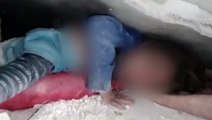 Sister shields younger brother from dust during 36-hour wait under rubble in Syria