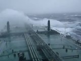 Large super tanker ship in huge storm in Atlantic Ocean