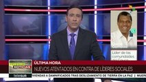 Crece escalada de violencia contra líderes sociales colombianos