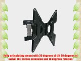 Buy on Amazon : http://www.amazon.com/gp/product/B008RGHU4I?tag=catfoodrevi0a-20 <br /> <br />Monoprice 108585 Articulating HDTV Wall Mount Bracket Black <br /> <br />Fully articulating mount with 15 degrees of tilt 80 degrees of swivel and 11 inches extension <br />Fits TVs with VESA patterns from 50x50 to 750x450 <br />Mounts to concrete brick or 16-Inch stud walls <br />Built-in level <br />Mounting hardware included