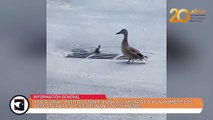 Un curioso gatito se mete en una caja llena de patos que rápidamente empiezan a rodearlo y lo acorralan en una esquina <br /> <br />Cortesía <br /> <br />Youtube: ignoramusky
