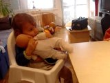 Lustiges Kleinkind muss immer lachen wenn Mutter Flöte spielt