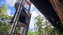 Cat Smoothly Climb Ladders Behind Owner While Following Him.