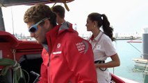Volvo Ocean Race - La Miss Mundo escala el mástil del barco del Dongfeng