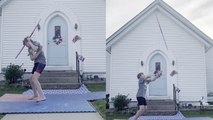 'Slick young athlete impresses with his jaw-dropping bo staff skills'
