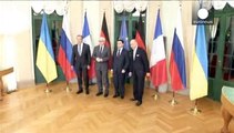 Gemeinsam wollen sie im Ukrainekonflikt eine Wende einleiten: Die deutsche Bundeskanzlerin Angela Merkel und der französische Staatspräsident Francois Hollande sind in Kiew mit dem ukrainischen Präsidenten Petro Poroschenko zusammengetroffen. <br /><br /> Am Freitag wollen sie nach Moskau weiterreisen, zu einem Blitzbesuch Präsident Wladimir Putin. Dessen Friedensplan war von Kiew zuletzt als inakzeptabel abgelehnt worden. Hollande und Merkel wollen nicht nur Gespräche führen, sondern offenbar auch einen neuen Friedensplan vorschlagen.<br /><br /> Das sagte US-Außenminister John Kerry. Der schloss in Kiew unterdessen auch amerikanische Waffenlieferungen nicht aus: “Wir wollen eine diplomatische Lösung. Aber vor Panzern, die von Russland aus über die Grenze in die Ukraine fahren, können wir unsere Augen nicht verschließen. Wir können auch nicht wegsehen, wenn russische Kämpfer in abzeichenlosen Uniformen über die Grenze gehen und dort sogenannte Separatisten im Kampf anführen.”<br /><br /> Auch den Antransport moder