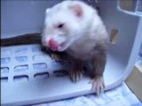 Un furet s'éclate dans un bain de chips en polystyrène