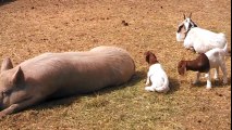 Patient Pig 'Panda' Plays With Baby Goats