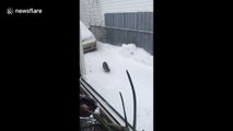 Cat catching snow makes the most of Canada's winter weather
