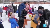Russians enjoy winter weather at snowman festival