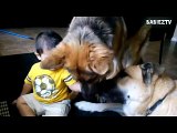 Big Dogs Plying with Babies