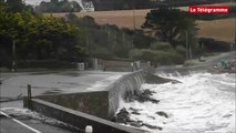 Douarnenez (29). Les vagues passent par-dessus les quais