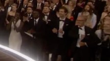 Moment Keaton put acceptance speech back in his pocket as Eddie Redmayne won Best Actor Oscar, Michael Keaton putting his speech back in his pocket after realizing he lost,