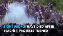 Mexican teachers took to the streets in several cities throughout the country to protest a police attack on Tuesday against a 4,000 strong demonstration in the Pacific Coast city of Acapulco. State riot police attacked the demonstration that was blocking access to the local airport. One teacher, Claudio Castillo was killed, dozens injured, and more than 100 detained. Teachers are demanding an investigation and punishment of those responsible. Clayton Conn reports from Mexico City. teleSUR
