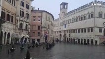 Perugia, freddo e qualche fiocco di neve sul centro della citta'