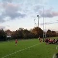 Un rugbyman fait une aile de pigeon pour éliminer ses adversaires et marquer un essai de 100m