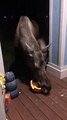 Mama Moose and Baby Eating Carved Pumpkin