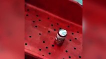 Pasajero factura una lata de cerveza y sale por la cinta transportadora