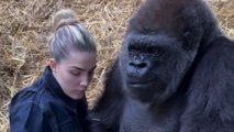 Conservationist sneaks food to female gorilla - so greedy husband doesn't steal it