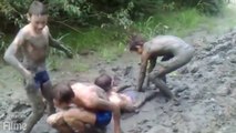 Dumme Kinder spielen im Schlamm