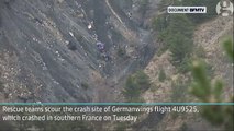 Rescue teams reach Germanwings crash site in the French Alps to try to recover the bodies of the 150 passengers and crew on board. Report by Hampshirel. Like us on Facebook at http://www.facebook.com/itn and follow us on Twitter at http://twitter.com/itn