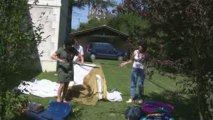 Démontage d'une tente par l'équipe de France Bleu Gironde pour Camping 3