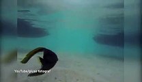 Watch amazing moment fish head swims without its body after being g