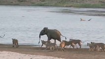 Young Elephant Survives Attack By Lion Pack