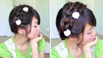 Wedding prom hairstyle for long hair _ updo tutorial with braided flowers
