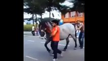 Horse Kicks the Man on Face - Funny