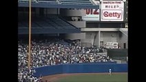 Jay Buhner (SEA) hits a tape measure shot to the black-painted bleachers at Yankee Stadium (8/19/88)