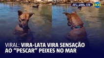 Vira-lata vira sensação nas redes sociais ao “pescar” peixes no mar
