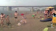 Siberian beach-goers hit by hail-storm Watch Video