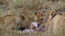 Lions enjoy lunch on the Masai Mara, Kenya