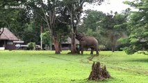 Elephant climbs tree to grab fruit for its breakfast in Thailand