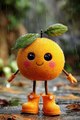 Orange Enjoying the Rain – Cute Fruit Rain Dance 🍊🌧️