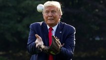 Donald Trump plays with baseball players at the White House