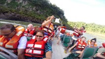 Iguazu Falls, Iguazú Falls, Iguassu Falls, or Iguaçu Falls (Portuguese: Cataratas do Iguaçu [kataˈɾatɐʒ du iɡwaˈsu]; Spanish: Cataratas del Iguazú [kataˈɾatas ðel iɣwaˈsu]; Guarani: Chororo Yguasu [ɕoɾoɾo ɨɣʷasu]) are waterfalls of the Iguazu River on the border of the Argentina province of Misiones and the Brazilian state of Paraná.