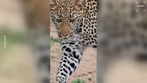 Incredible moment man scares away leopard with a stick