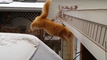 Un Chat qui se ridiculise en essayant de sauter sur le toit! FAIL dans la neige!