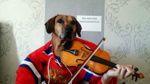Funny Dog playing violin happy birthday to you