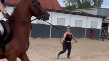 Three-year-old horse keeps bucking the girl off during the training session